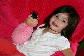 Then I came across Swaddle Babies. Priscilla Rose, the amazing creator, hand stitches every baby for your customized order. Priscilla is a stay at home mom who was inspired to make her daughter a Waldorf style doll that was the perfect size for small hands. After seeing her creation, many of her friends started asking for her to make them dolls and then Swaddle Babies was born.