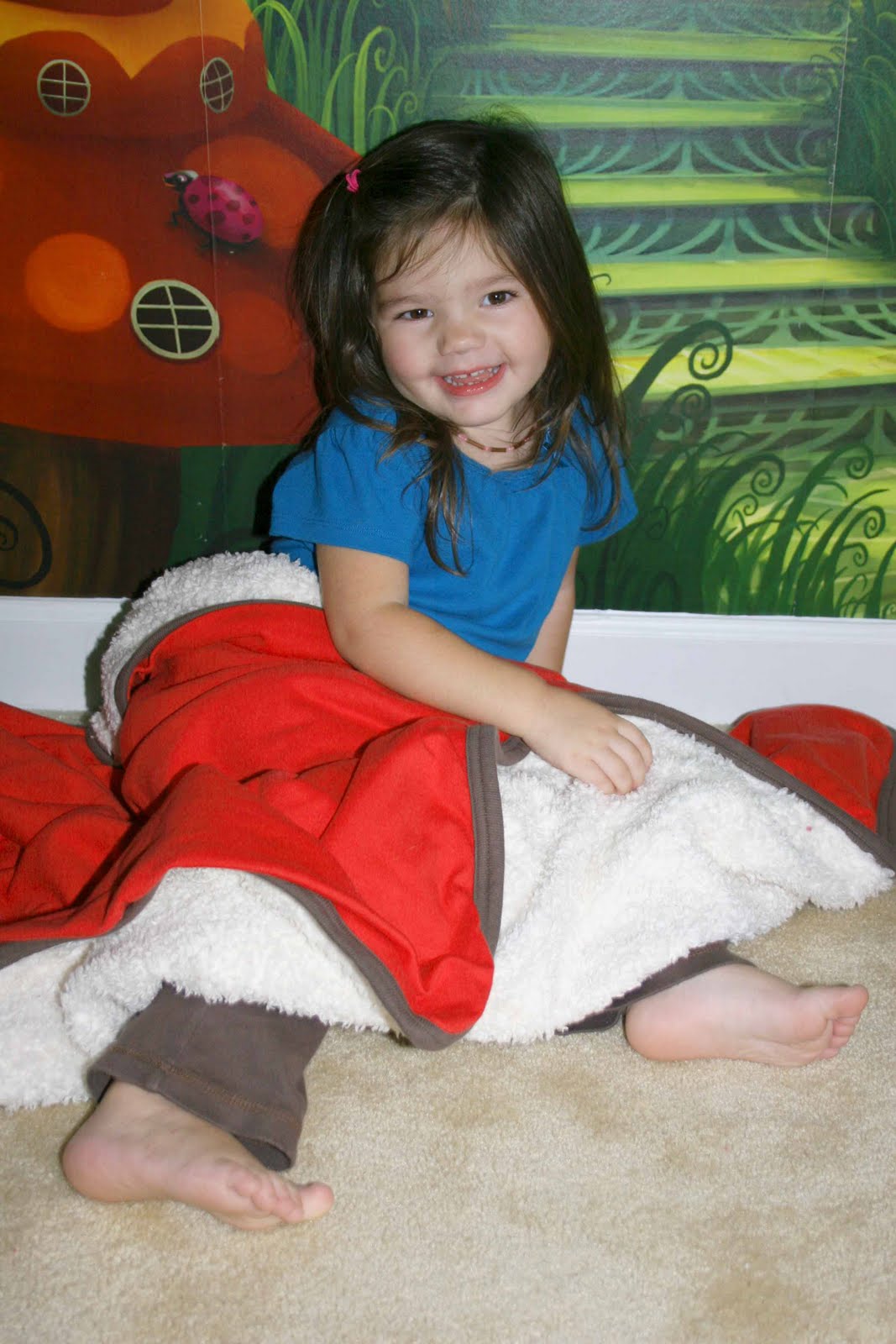 When Ella first saw her tomato + cocoa plush blanket she told me to go put it in the dryer! She didn’t even feel the blanket, but was angry it wasn’t pink. I’m guessing she thought the dryer would make it pink??? I told you the process of giving up her flunky hasn’t been easy. But, I used my mom thinking cap and told her it matched her mushrooms on her wall. (She’s big on matching lately) So she took the blanket to the mushroom and matched it, then slept with it that night.