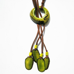Palma Collection sent me a Hosono Necklace in Lime Green to review and I’m seriously in love! The strap looks and feels like it is suede, but it is cotton. So there are absolutely no animals harmed for the sake of Palma Collection fashion. The Hosono has several tagua nut slivers that dangle at different lengths and you can adjust the strap.