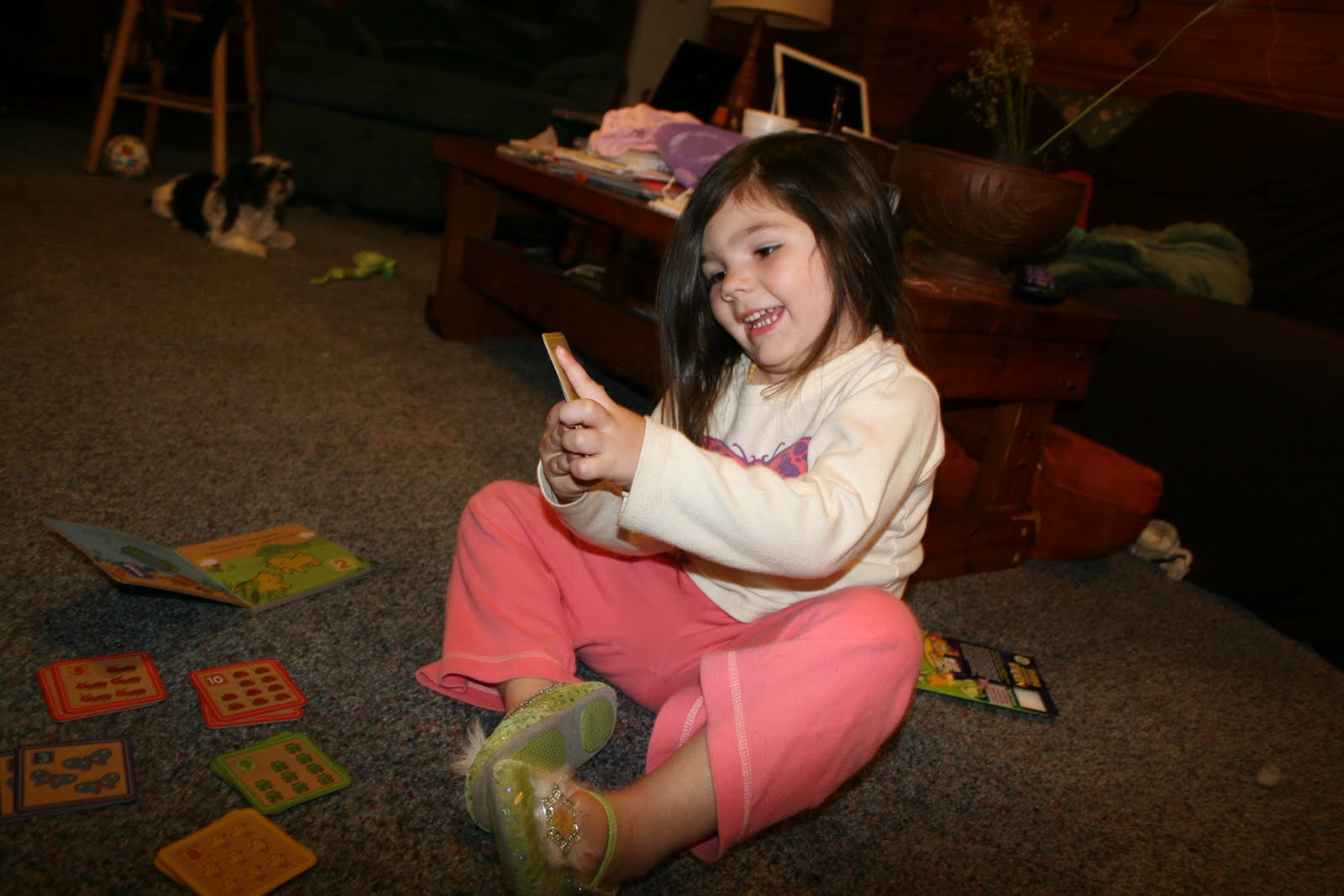 have been life savers on many occasions. Especially when we were trying to help set up Franklin Goose. They both come in sturdy boxes with handles. They are durable and sturdy, so perfect for rough preschoolers. Ella has pretty much mastered the ABC floor puzzle and it takes her about 20-30 minutes to put it together. Which is perfect while I’m working! The numbers in nature book and game set also keep her occupied for a half hour. She matches the cards to the book and then turns the cards upside down to play the matching game.