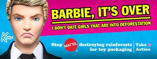- Greenpeace posted the above banner on Mattel’s building June 7. Mattel is wrapping its Barbie brand in rainforest sourced paper pulp from Indonesia and Greenpeace is fighting back.