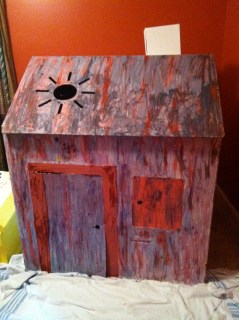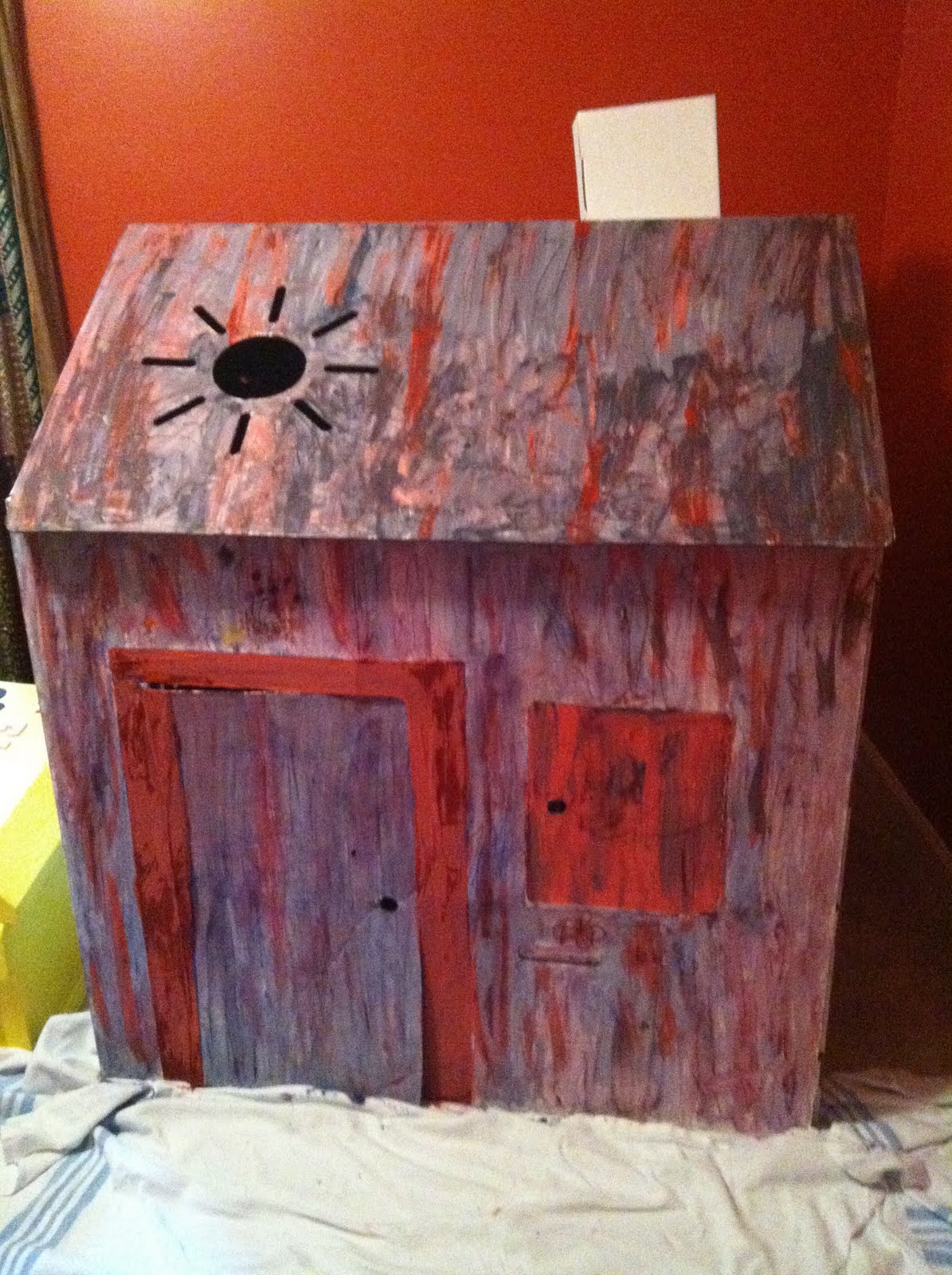 E got this cardboard house a couple of years ago and LOVES it. She decided to draw on it, before I had a chance to make it pretty. So it’s been an eyesore. Our house is STILL on the market (15 months to be exact) so I decided it was time to make it pretty.