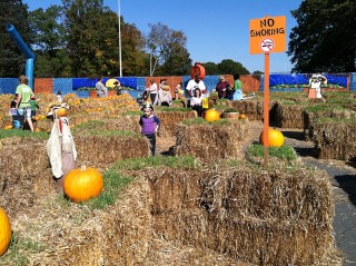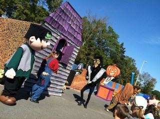 Starting at 12 p.m., Howl-O-Fest’s Boo Blast activities begin. Your kiddo can meet Charlie Brown and friends, plus some other friendly costume characters; play in a Foam Pit; go through the Great Pumpkin Patch maze; pick a (free) pumpkin from the Mumpkin Patch; play ghostly games; get their face painted; color; and more! I was really impressed E zipped right through the maze by herself.