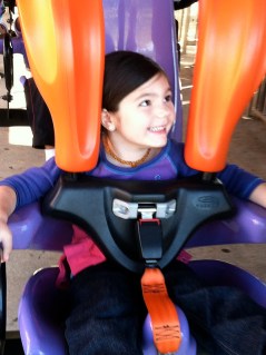If she was tall enough, she would have been on the upside down roller coasters. 🙂 She was 2 inches too short to ride some of the rides when we visited in April, so we waited the perfect amount of time before returning.