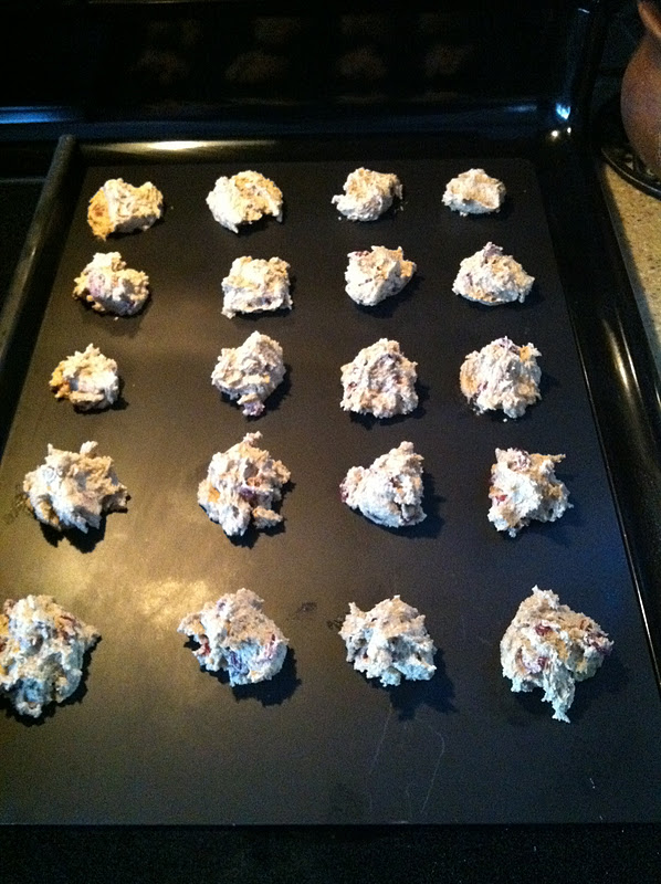 Drop small spoonfuls onto cookie sheet at least 2 inches apart.