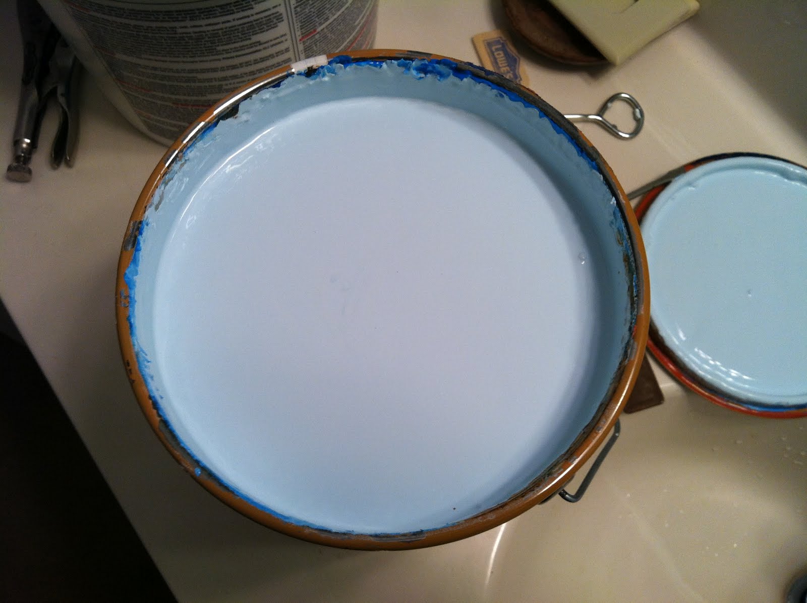 The paint above- Powder Blue, hasn’t even been stirred! Since ECOS Paint is a chemical free paint, I decided it would be ok for E to help out in painting. She had a blast being a part of the transition!
