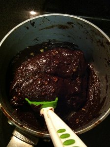 *See how it looks different than regular brownie mix. You want it thick and shiny- not runny.