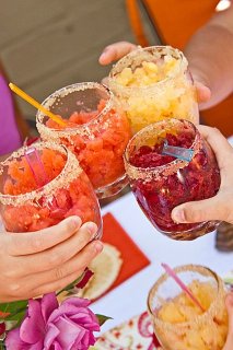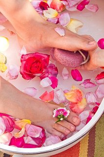 The Natural Spa party includes chocolate facials, banana avocado face masks, grapefruit sugar rubs, lavender and rose petal foot soaks, apricot brown sugar scrub, and rosemary and mint sea salt bath mix. The menu includes Black Bean, Corn, and Cheese Quesadillas with Blue Corn Chips, Sweet and Savory Strawberry Apricot Tarts, and Italian Ices with Lemon-Vanilla Pizzelles.