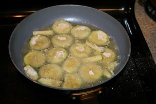 E enjoys her vegetables raw or fried. Zucchini is one of my personal favs and neither of us enjoy the raw texture. So I decided to use the organic Palm Shortening and make some zucchini chips for dinner. Check out how they turned out!