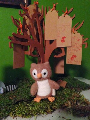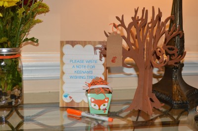 2 Berry Creative. I stamped foxes on each tag as well. I found a tree at Michaels and painted it brown to go with the theme.
