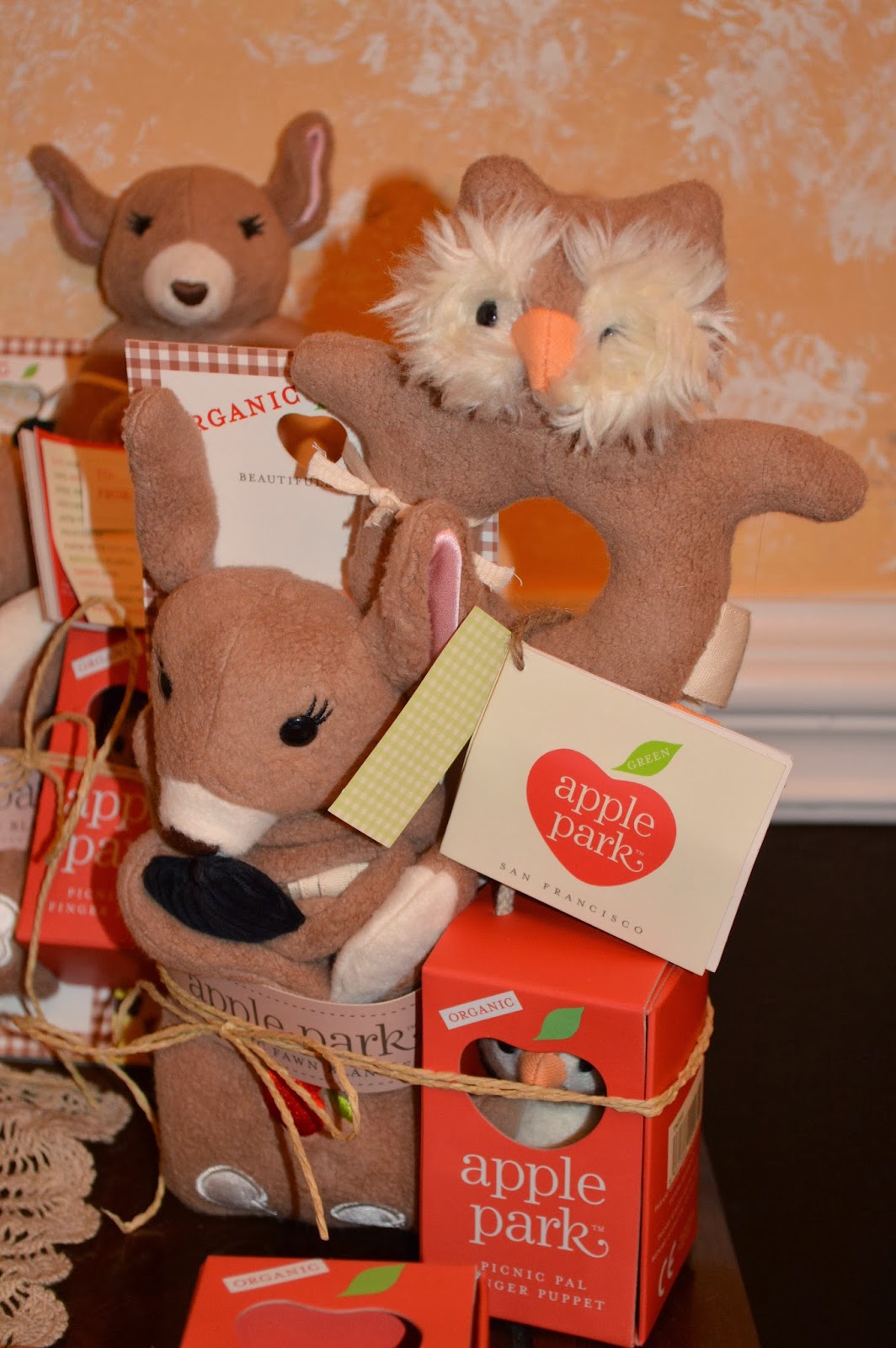 The party favors were a huge hit thanks to Apple Park! They sent us their organic woodland blankies, rattles, Owl finger puppets, and Who Lives in the Woods book.