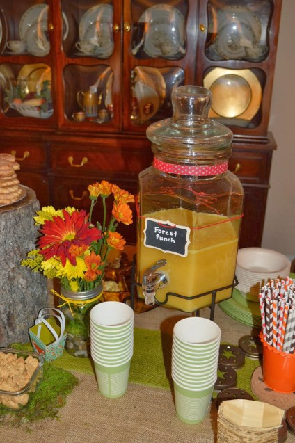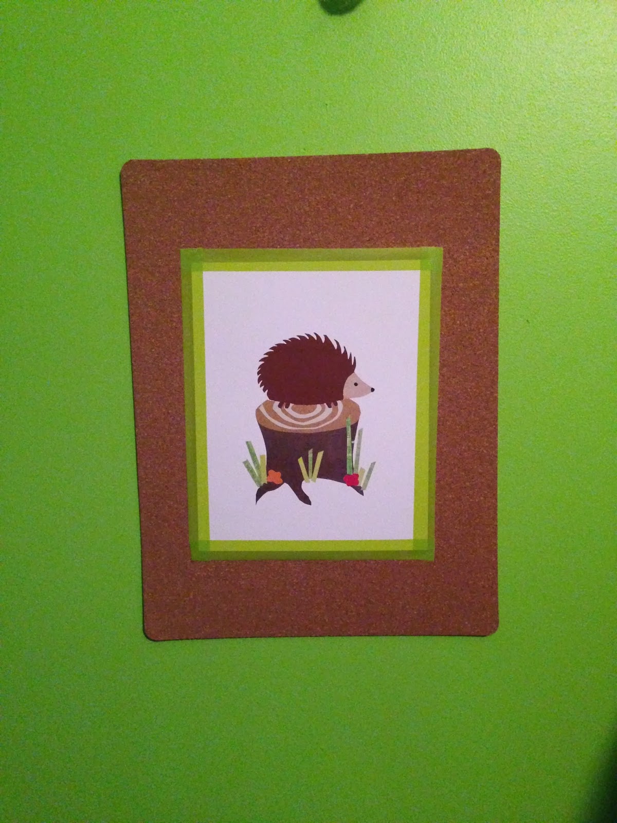 Children Inspire Design sent us several woodland prints which we hung as party decor. I taped the prints (with removable washi tape) to corkboard and then hung with removable wall tape and putty. They also now are hanging in his room!