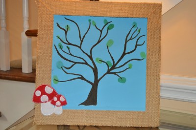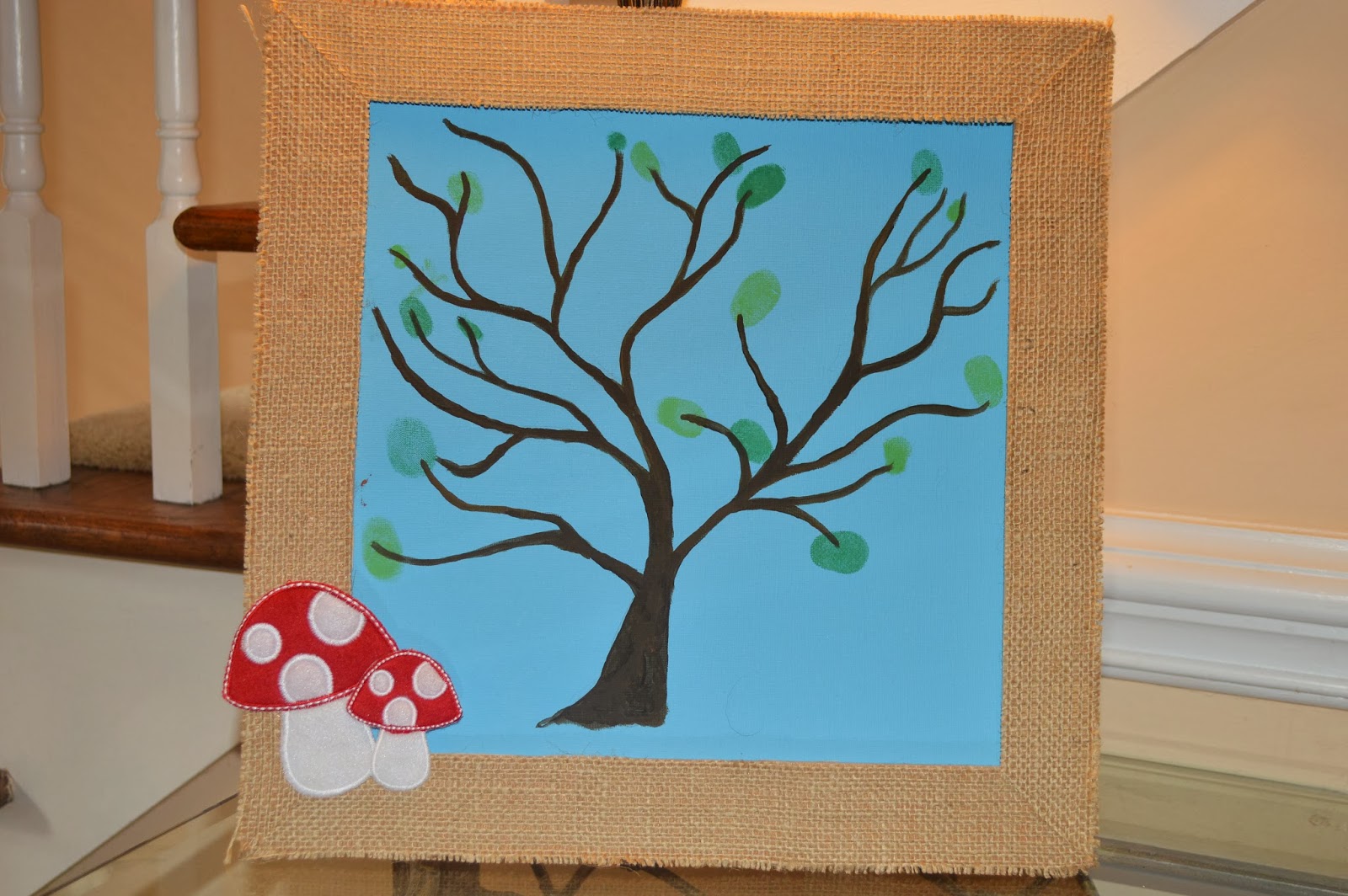 I also had the guests make finger print leaves on a picture we drew which now hangs in his room. I had meant to do a few owls, which I think I will go back and do later.