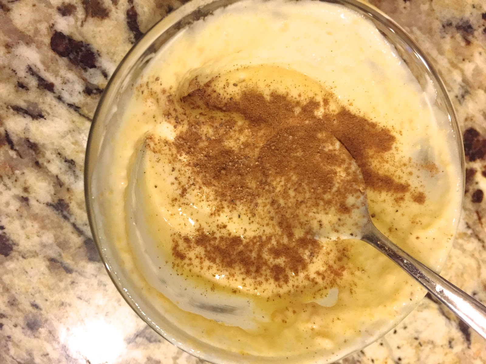 I used Vanilla, but you could also use plain. I added nutmeg and cinnamon for flavoring.