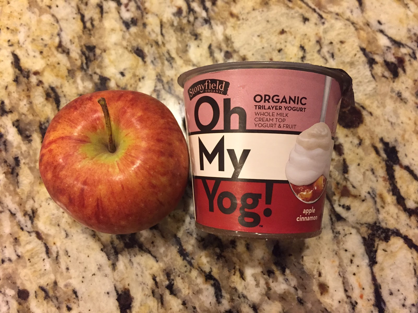 I like treating Oh My Yog! as a dip and am always trying new things. Like I said above, dipping Challah in it is divine. The Apple Cinnamon tastes just like an apple pie. There are apple chunks in the yogurt, but I love the texture of a fresh apple. This could be a great breakfast, lunch or snack for at home or on the go.