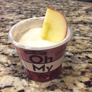 Stonyfield’s Oh My Yog! is my absolute favorite yogurt they make. I have tried all of the flavors and it is a tie between the Wild Quebec Blueberry (served with Challah is amazing!) and the Apple Cinnamon. You can freeze the yogurt right before you go to bed, take out when you wake up, and by lunch time it has defrosted and is still cold.