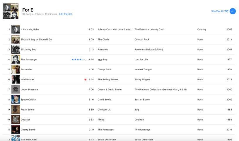 So this got me to thinking about playlists. What my playlist was. What playlist I should create for my kids to turn them on to great music. What playlist I would create for someone who has never heard American music. I spent a couple of days putting music together for my kids- mainly my oldest E. When I finally got it together, I turned it on and they all started dancing and moving around.